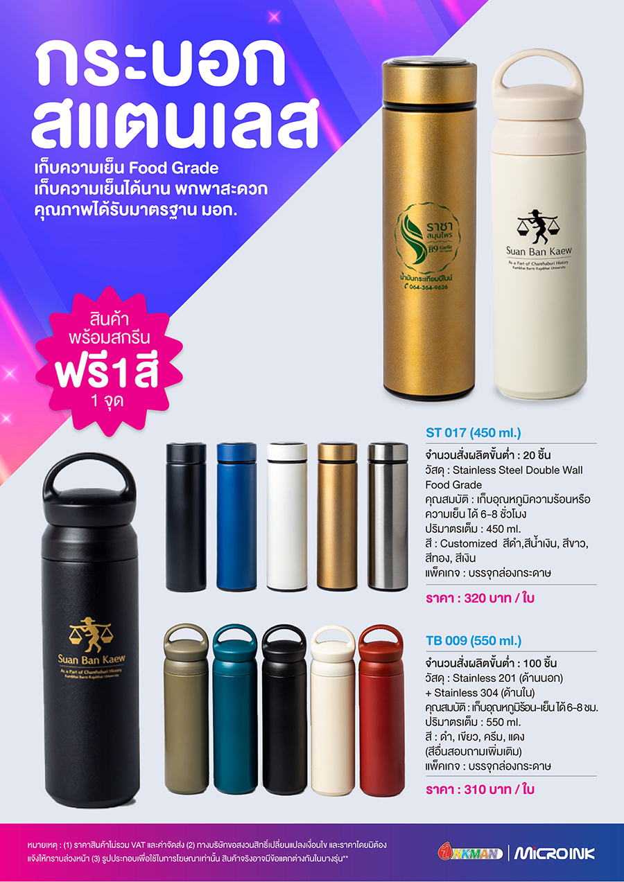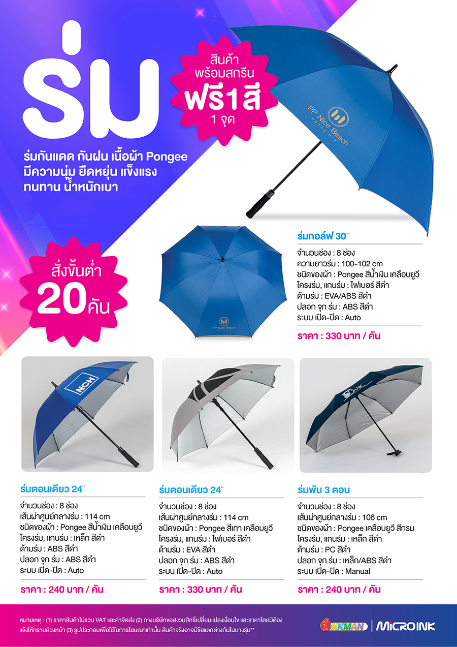 สินค้าพร้อมให้เลือกหลากหลาย ไม่ว่าจะเป็น กระเป๋าผ้า ( ทั้งแบบมีก้น และไม่มีก้น ), ร่มสกรีน, แก้วเก็บอุณหภูมิ และอีกหลายแบบ เหมาะกับทุกโอกาสทั้งงานมงคล