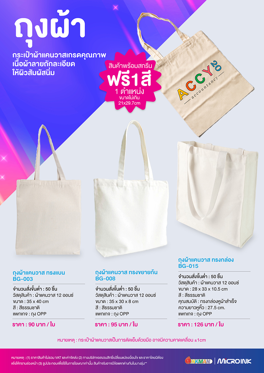 สกรีนกระเป๋าผ้าดิบสุดชิค พกไปเรียน ไปทำงานบ่งบอกตัวตน