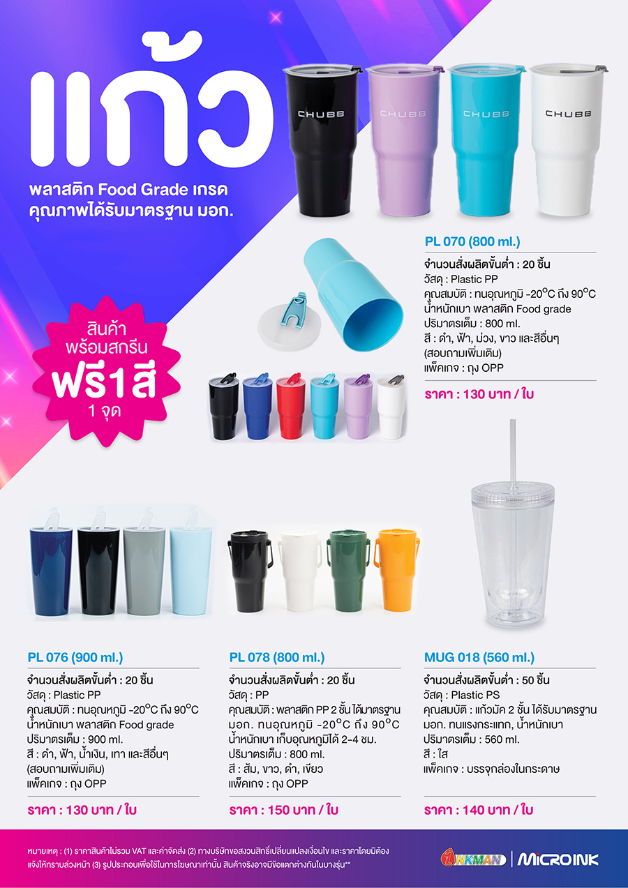 • ลูกค้าสกรีนได้ 1 จุด ด้านหน้าหรือหลัง